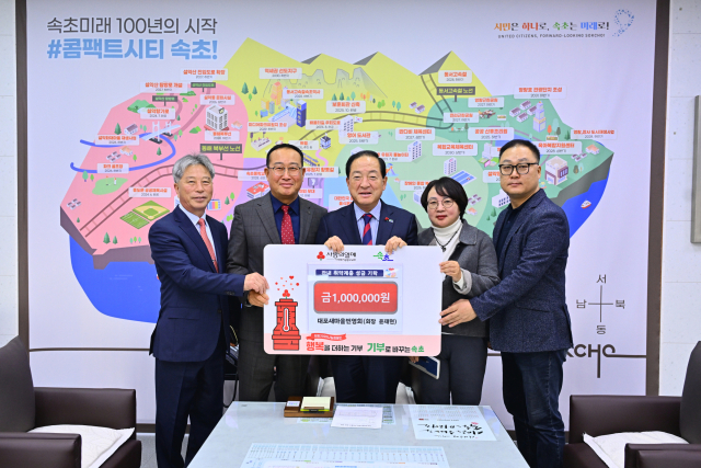 속초시 대포새마을번영회(회장:윤재현)는 11일 속초시청을 방문, 대포동 지역 취약계층 지원을 위한 이웃돕기 성금 100만원을 대포동 복지나눔기금으로 지정 기탁했다.