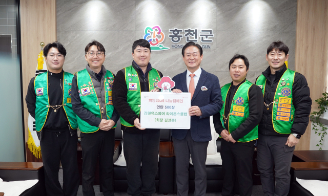 강원유스파머 라이온스클럽(회장:김정훈)은 10일 홍천군청을 방문해 겨울철 어려운 이웃을 위해 연탄 500개를 기탁했다.