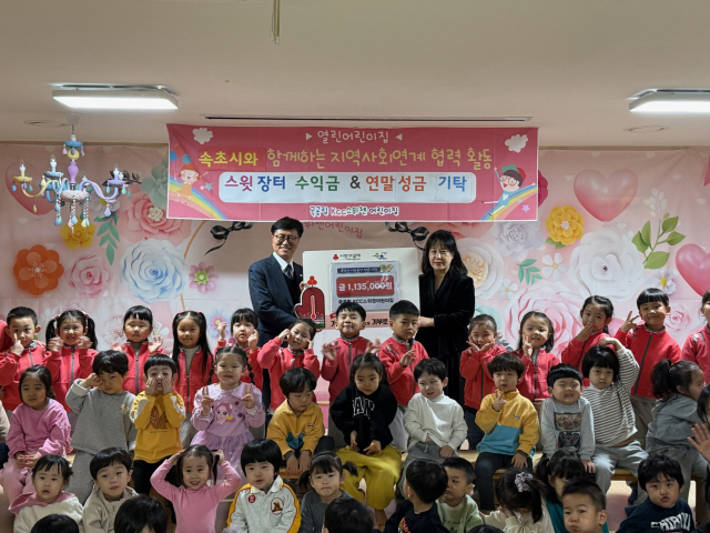 속초시 국공립 KCC스위첸어린이집(원장:김미현)은 11일 어린이집 원생과 보호자가 참여해 열린 프리마켓 ‘KCC스위첸 스윗장터’에서 발생한 수익금과 교직원의 성금 등 총 113만5,000원을 속초시에 기탁했다.