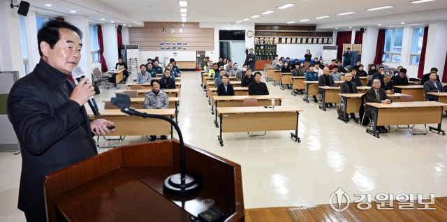 박진오 강원일보 사장이 11일 속초경찰서에서 열린 강원 자치경찰위원회 간담회에서 '한국 언론산업의 실태와 공공기관의 홍보 전략'을 주제로 강연하고 있다.