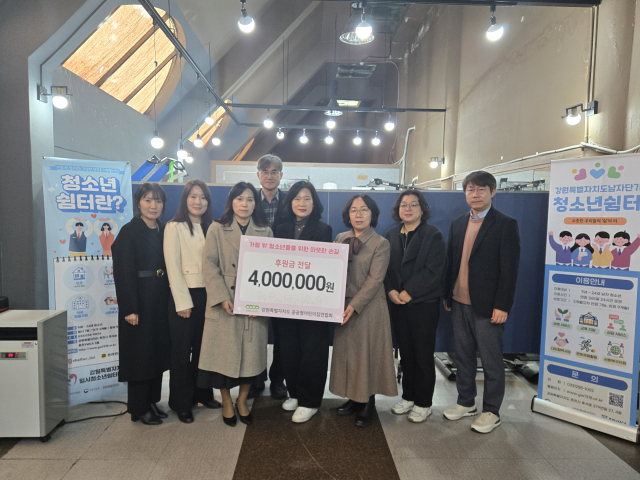 강원특별자치도공공형어린이집연합회(회장:최은영)가 11일 강원특별자치도남자단기청소년쉼터를 찾아 후원금 400만원을 전달했다. 후원금은 도내 공공형어린이집 108곳이 푸른콩깍지 아나바다 장터를 개최해 얻은 수익금이다. 기탁된 금액은 도고정형일시청소년쉼터와 도남자단기청소년쉼터에 전달됐다.