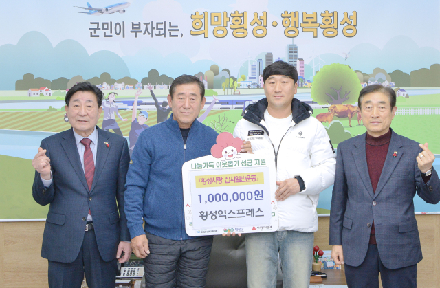 횡성 갑천면농촌지도자회(회장:박봉수)는 11일 횡성군청을 방문해 '횡성사랑 십시일반운동'에 동참하며 성금 100만원을 기탁했다.