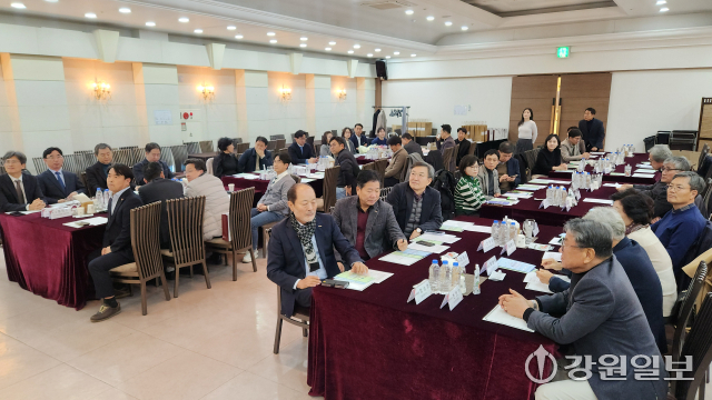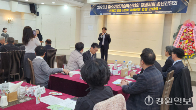 ‘2025 중소기업기술혁신협회 강원지회(회장:정의수) 송년간담회’가 11일 원주 빌라드아모르에서 박순홍 강원지방중소벤처기업청장, 한만우·함승호·박영식·김재성 명예회장, 회원 등이 참석한 가운데 열렸다. 원주=허남윤기자