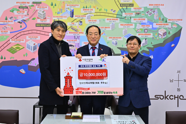 현대엔지니어링(대표:주우정)은 지난 12일 속초시청을 방문, 시 이웃연대 희망나눔기금과 속초시 지체장애인협회에 각각 500만원씩 총 1,000만원의 성금을 전달했다.