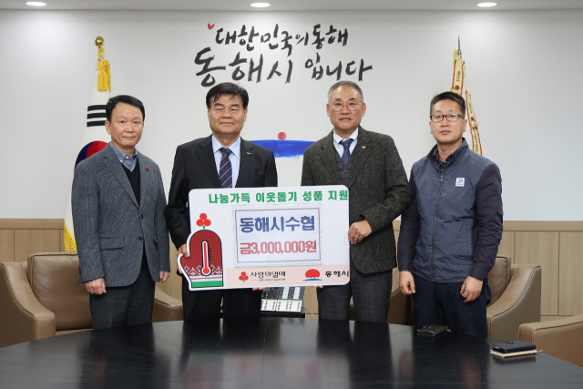 동해시수협(조합장:김동진)은 지난 12일 동해시를 방문, 나눔가득 이웃돕기 성금 300만원을 기탁했다.