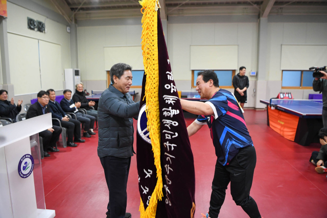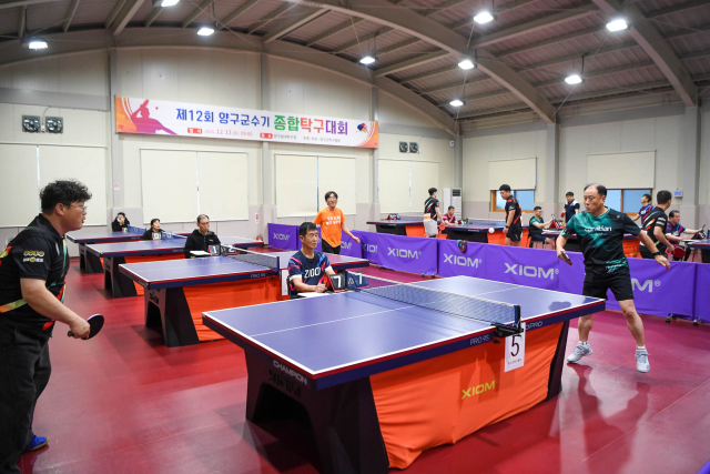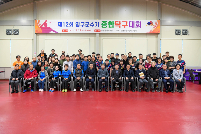 제12회 양구군수기 종합 탁구대회가 지난 13일 양구실내탁구장에서 개최됐다. 이날 주요 내빈들은 양구군 탁구 발전에 기여해 온 선수들에게 감사의 뜻을 전했다.