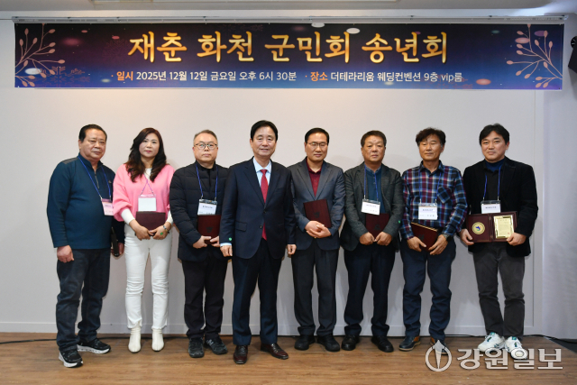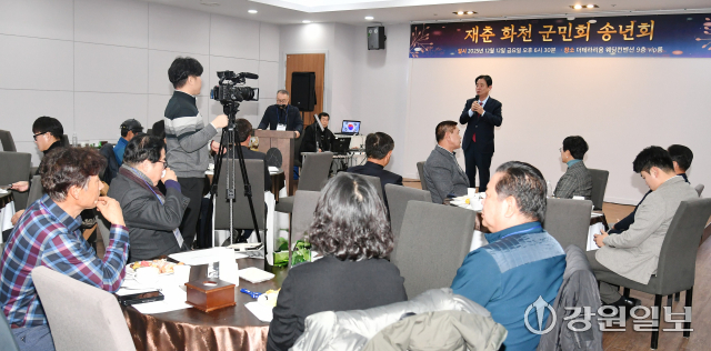 재춘 화천군민회 송년회가 지난 12일 춘천시 퇴계동 한 음식점에서 최문순 화천군수를 비롯해 회원들이 참석한 가운데 열렸다.