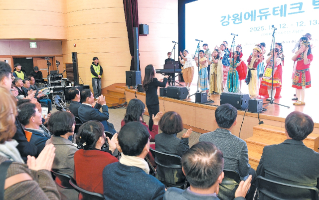 2025 강원에듀테크박람회 개막식 사전 공연으로 강원일보 어린이합창단이 무대에 올라 큰 박수를 받았다.