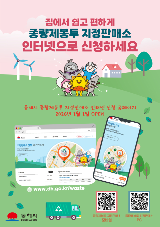 【동해】동해시가 ‘대형폐기물 배출 및 종량제봉투 지정판매소 온라인 신청 시스템’을 구축, 내년 1월 1일부터 본격 운영에 들어간다.