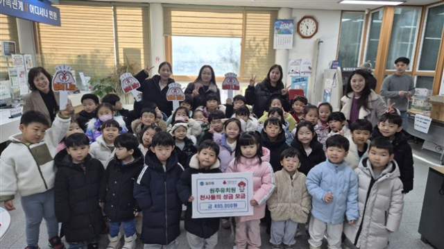 원주 일산동 원주유치원(원장:임경애) 원아들은 지난 12일 일산동행정복지센터에 아나바다 시장의 판매 수익금 49만5,000원을 취약계층 성금으로 기부했다.