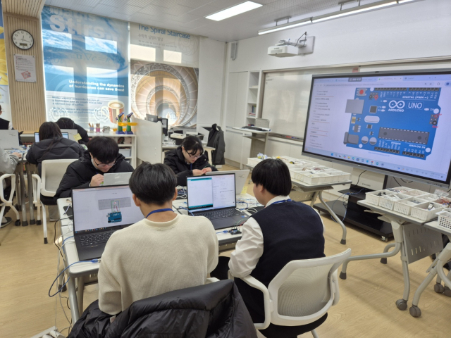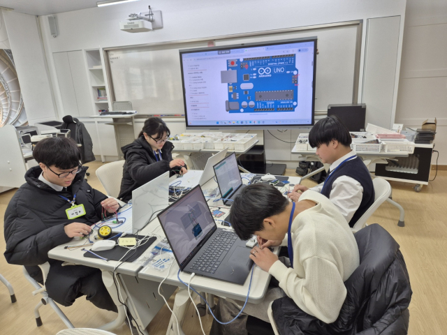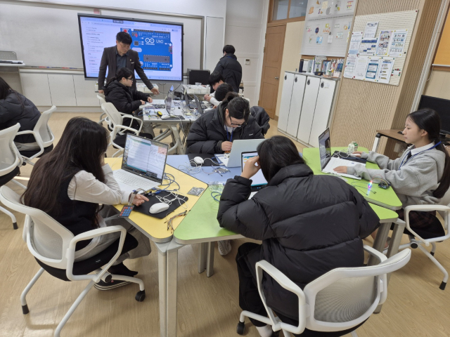 이에 한림대 RISE교육센터 소속 전문 강사진이 학교를 직접 방문했으며, 학생들은 생성형 인공지능(AI)과 센서, 출력장치 등 피지컬 컴퓨팅 기술을 결합해 직접 ‘스마트 장치(Smart Thing)를 설계하고 구현해 보는 1일 집중형 체험프로그램을 진행했다.