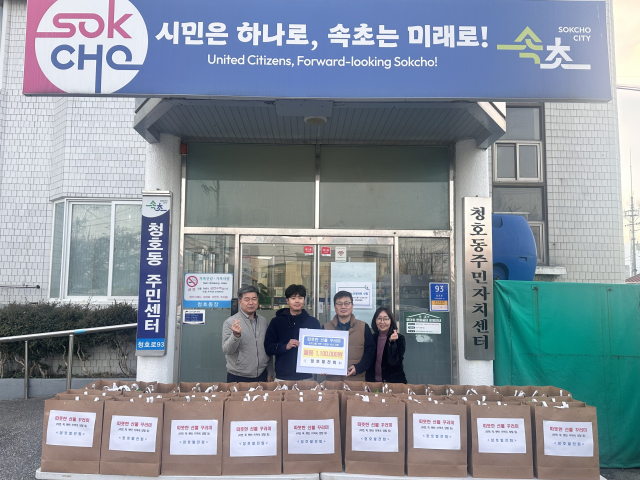 속초시 청호동 소상공인 14명으로 구성된 청호발전회는 16일 청호동 주민센터를 방문, 지역 내 어르신들이 간단하게 한끼 식사를 해결할 수 있도록 110만원 상당의 후원물품을 전달했다.