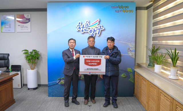양구군택시연합회는 16일 양구군청을 방문해 이웃돕기 성금 300만원을 서흥원 양구군수에게 전달했다.