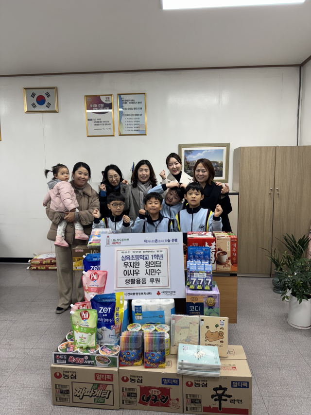 동해시 천곡동 삼육초등학교 1학년 우지완·정의담·이시우·시민수 어린이는 최근 용돈을 아껴 마련한 학용품과 식료품(40만7,900원 상당)을 기탁하며 따뜻한 나눔을 실천했다.