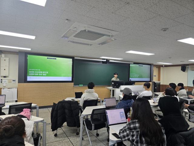 강릉 출신 강명진 아주디자인그룹 대표는 지난 11일 정선 출신 김성희 한양대 창의융합교육원 교수가 이끄는 교양과목 '빅데이터·사물인터넷·인문학적 상상력' 수업에 참여해 학생들의 프로젝트를 평가하고 산업 현장 관점의 피드백 및 총평을 전했다.