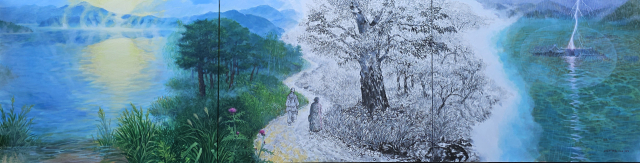 전시에서 권용택 작가는 아침못 설화를 한 화면에 담아 이야기를 전하고, 임근우 작가는 지도를 통해 과거의 사람과 지금의 사람을 연결한다. 신대엽 작가는 ‘지옥도’와 ‘상생도’를 한 화면에 담아, 오늘 우리가 어떤 세상을 선택할지 물었다.