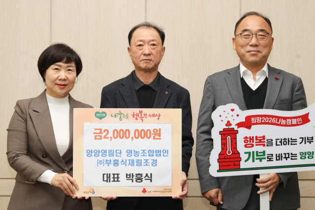양양영림단 영농조합법인(대표:박흥식)은 17일 양양군청을 찾아 탁동수 양양군수권한대행에게 이웃돕기성금 200만원을 기탁했다.