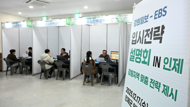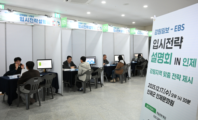 이날 인제지역 고교 1년생 130명과 학부모들이 인제문화원 2층 대강당과 1대1 상담부스를 가득 메웠다. 특히 인제 입시전략 설명회는 올해 행사 중 가장 많은 14개의 일대일 상담부스가 마련돼 맞춤형 학습전략 상담을 제공했다.
