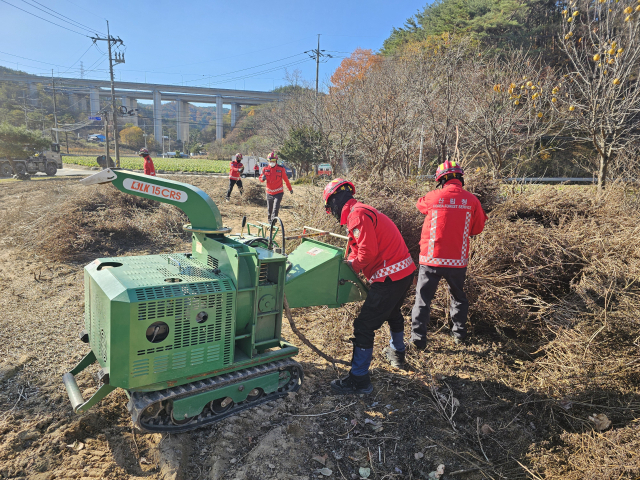 올해 동부지방산림청은 총 14개조 116명으로 구성된 '영농부산물 제거반'을 운영해 고춧대, 깻대 등 약 31ha 245톤의 영농부산물을 수거·파쇄했다.