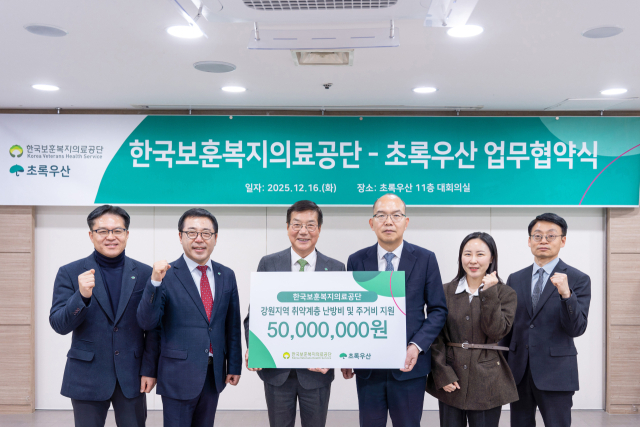 아동복지전문기관 초록우산과 한국보훈복지의료공단은 17일 초록우산 대회의실에서 ‘전국 보훈가정 자녀 및 취약계층 아동 지원’업무협약을 체결했다. 이날 협약식에서는 강원 지역 아동의 난방비·주거비 지원을 위한 후원금 5,000만원이 전달됐다.