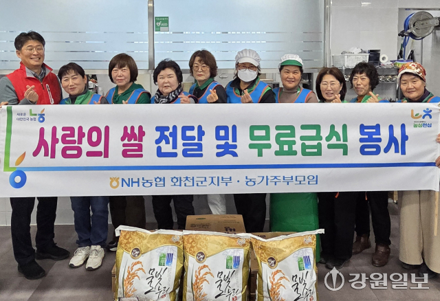 NH농협화천군지부 (지부장:민연홍)와 농가주부모임(회장:이명순)은 18일 화천시내 장수식당을 찾아 사랑의 쌀을 전달하고 무료급식 배식 봉사활동을 했다.