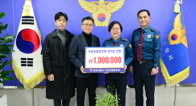 ◇횡성경찰서 안보자문협의회(회장:김병도)는 18일 횡성경찰서장를 방문해 김희빈 서장에서 강원경찰장학회 장학금 100만원을 전달했다.