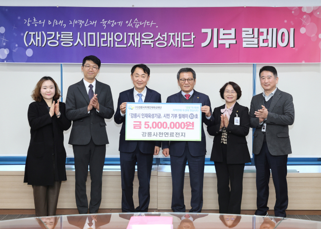 강릉사천연료전지(대표:권규섭)는 18일 강릉시청을 찾아 김홍규 강릉시장에게 (재)강릉시미래인재육성재단(이사장:김상영)장학금 500만원을 기탁했다. 강릉사천연료전지는 지난 2023년부터 매년 재단에 장학금을 후원하며, 올해로 3년째 총 4,000만 원의 나눔을 이어오고 있다.
