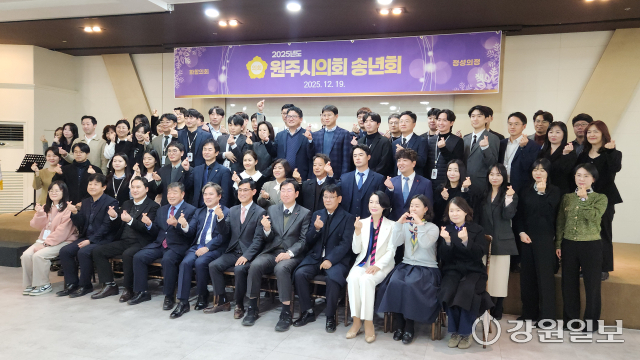 시의회는 또 이날 태장동 빌라드아모르에서 조용기 의장과 의원, 원강수 시장, 원경묵 시의정회 회장, 황형주 강원일보 원주본부장, 박상용 의정홍보위원회 회장, 위원, 시의회 직원 등이 참석한 가운데 '2025 시의회 송년회'를 갖고 올해 활동 성과를 공유했다.