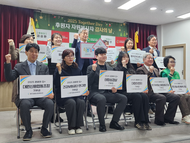 원주종합사회복지관(관장:이만복) 2025 투게더데이 후원자 자원봉사자 감사의날이 지난 19일 복지관에서 송기헌·최혁진 국회의원, 원강수 원주시장, 조용기 원주시의장, 박행수 후원회장, 황형주 강원일보 원주본부장 등이 참석한 가운데 열렸다. 이날 후원자 등에 대한 시상식과 더불어 훈훈한집 플러스 캠페인에 참여한 업체들과 독려 퍼포먼스를 진행했다.원주종합사회복지관(관장:이만복) 2025 투게더데이 후원자 자원봉사자 감사의날이 지난 19일 복지관에서 송기헌·최혁진 국회의원, 원강수 원주시장, 조용기 원주시의장, 박행수 후원회장, 황형주 강원일보 원주본부장 등이 참석한 가운데 열렸다. 이날 후원자 등에 대한 시상식과 더불어 훈훈한집 플러스 캠페인에 참여한 업체들과 독려 퍼포먼스를 진행했다.