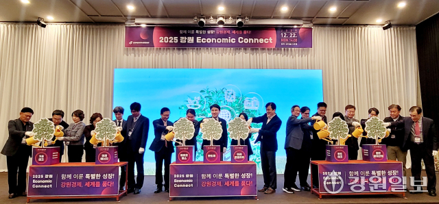 강원특별자치도경제진흥원은 22일 호텔인터불고 원주에서 '2025 강원 ECONOMIC CONNECT' 행사를 개최했다. '함께 이룬 특별한 성장! 강원경제, 세계를 품다!'를 주제로 한 이번 행사에는 도내 소상공인과 중소기업, 경제단체 관계자 등이 참석해 협력과 상생을 약속했다.