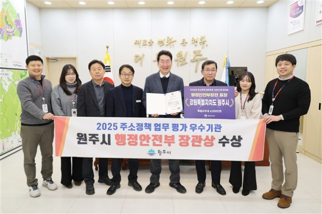 【원주】원주시는 행정안전부 주관 ‘2025 주소정책 성과 공유 워크숍’에서 주소정책 업무 평가 우수 기관으로 선정됐다고 23일 밝혔다.