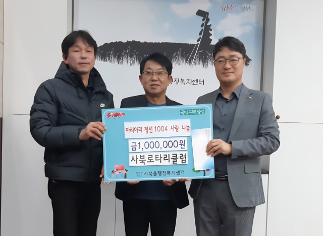 국제로타리 3730지구 사북로타리클럽(회장:최상철)이 23일 사북읍 행정복지센터에서 지역 내 취약계층을 위해 써 달라며 사북읍지역사회보장협의체에 성금 100만원을 기탁했다.
