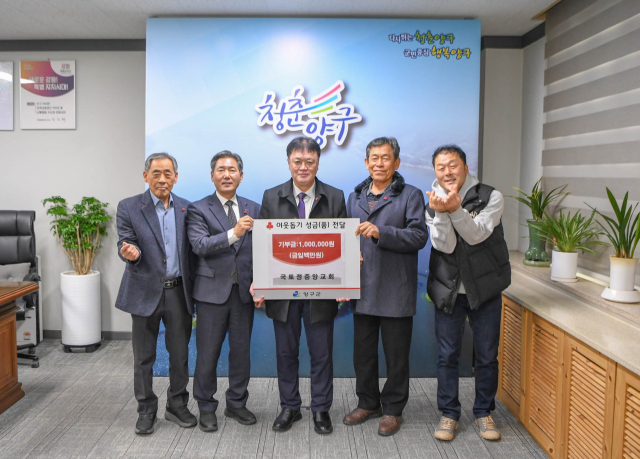 국토정중앙교회(담임목사:이도형)는 23일 양구군청을 방문해 이웃돕기 성금 100만원을 서흥원 양구군수에게 전달했다.