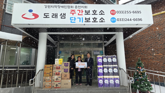 강원신용보증재단(이사장: 김기선)은 연말을 맞아 23일 춘천 도래샘 주간 보호소를 방문하여 100만 원 상당의 라면, 휴지 등의 물품을 전달했다.