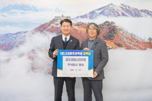 주식회사 원암(대표:남선옥)은 지난 24일 고성군청 군수 집무실에서 지역인재 육성을 위한 고성향토장학회 장학금 300만원을 함명준 군수에게 기탁했다.