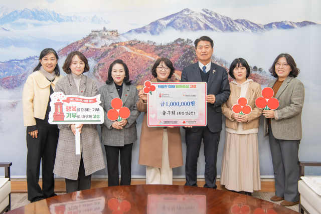 율구회(회장:안금선)는 지난 24일 고성군청 군수 집무실에서 사랑의 성금 100만원을 함명준 군수에게 기탁했다.