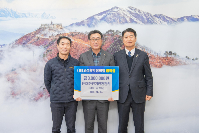 대한전기안전관리(대표:김기남)는 지난 24일 고성군청 군수 집무실에서 지역인재 육성을 위한 고성향토장학회 장학금 300만원을 함명준 군수에게 기탁했다.