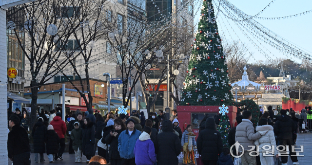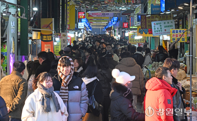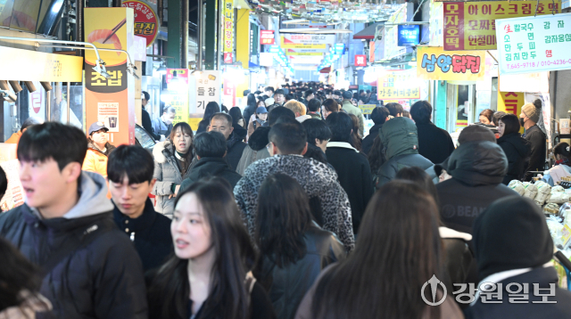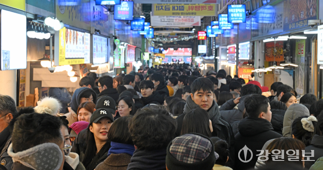 크리스마스인 25일 강릉 중앙시장이 나들이 나온 관광객들로 붐비고 있다. 강릉=권태명기자