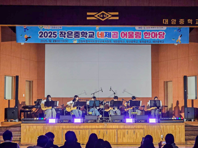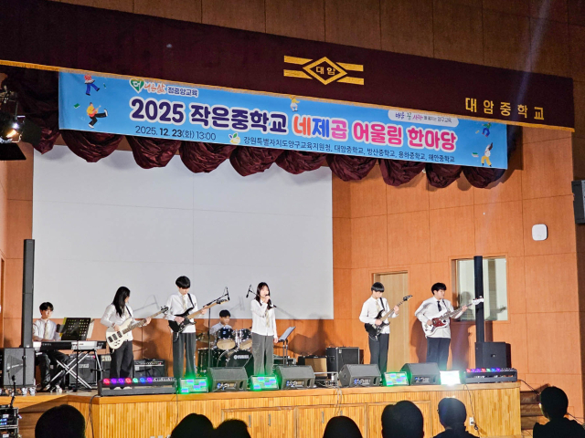 2025 작은중학교 네제곱 어울림 한마당이 최근 대암중 체육관에서 열렸다. 이날 지역 내 중학교(대암·방산·용하·해안) 학생들은 무대 공연을 통해 그동안 갈고닦은 실력을 선보이며 서로 화합하는 시간을 가졌다.