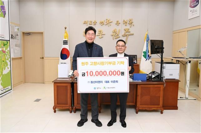이준희 ㈜동산이엔지 회장은 최근 원주시에 고향사랑기부금 1,000만원을 기탁했다.