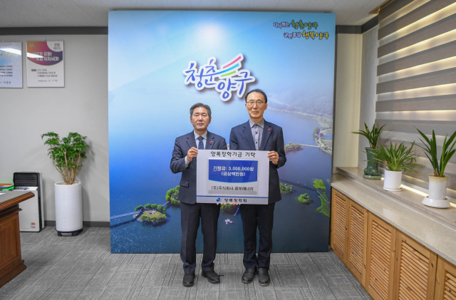 (주)중부에너지(대표:황인지)는 지난 26일 양구군청을 방문해 양록장학금 300만 원을 서흥원 양구군수에게 전달했다.