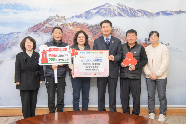 블랙우드마을관리 사회적협동조합(이사장:김영순)은 지난 26일 고성군청 군수 집무실에서 사랑의 성금 100만원을 함명준 군수에게 기탁했다.