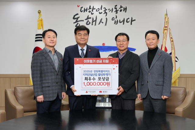 동해시 건설과(과장:이달형)는 강원특별자치도에서 실시한 2025년 지역건설산업 활성화 지원분야 평가에서 2년 연속 도내 최우수 기관으로 선정돼 받은 시상금 100만원을 29일 이웃돕기 성금으로 동해시에 기탁했다.
