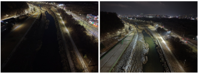 도로조명 설치가 어려운 북원교에서 강변교 인근까지 1㎞ 구간에는 별도 조명등을 설치했다. 특히 주차장과 운동시설 등 생활 편의 시설이 설치된 강변교 인근에는 스포츠용 고효율 LED 투광등 집중 설치로 활용도를 높였다.