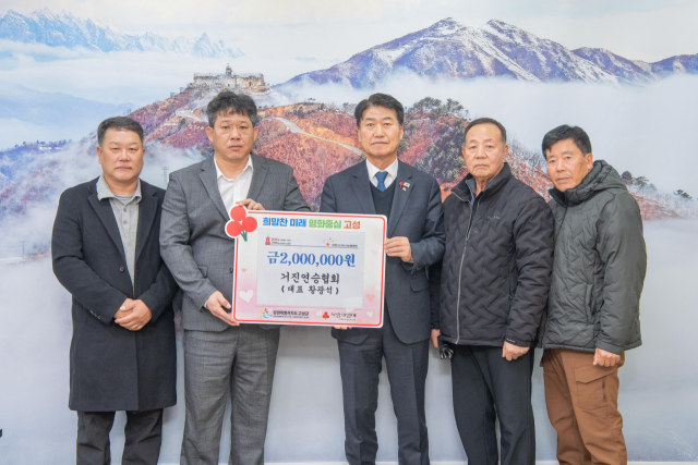 고성군 거진연승협회(회장:황광석)는 29일 고성군청을 방문, 사랑의 성금 200만원을 함명준 군수에게 기탁했다.