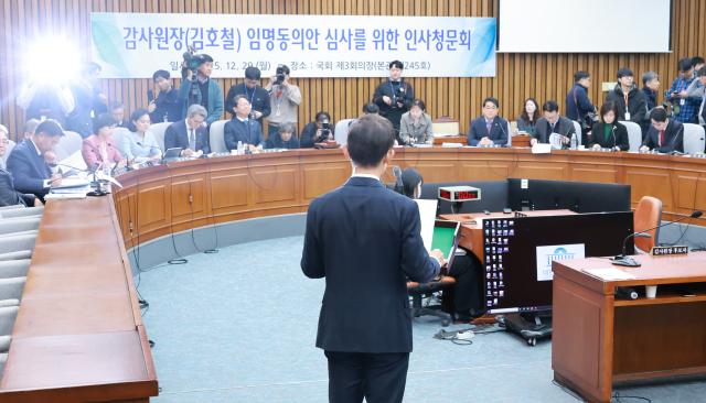 여야가 29일 열린 김호철 감사원장 후보자에 대한 국회 인사청문회에서 자료 제출과 민변 이력 등을 놓고 공방을 벌였다. 더불어민주당은 야당이 김 후보자를 흠집 내고자 고의로 발목 잡기에 나선 것이라고 주장했고 국민의힘은 이대로는 정상적인 청문회를 진행할 수 없다고 반발했다.