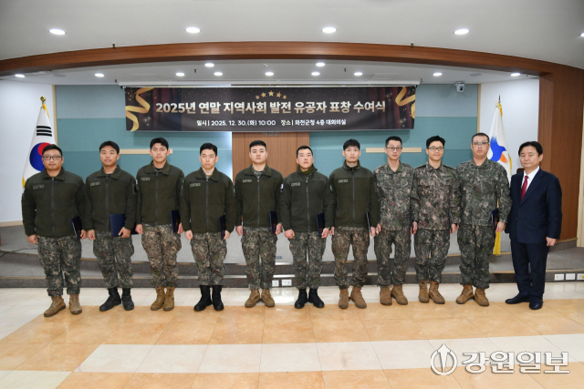 2025년 화천군 연말 지역사회 발전 유공자 표창 수여식이 30일 군청 대회의실에서 최문순 군수를 비롯해 공무원, 기관사회단체 회원, 군장병 등이 참석한 가운데 열렸다.