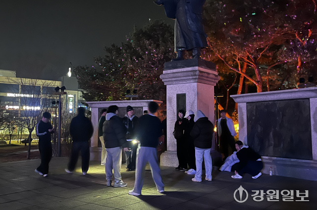 공지에 게시된 약속 시간인 지난 29일 오후 7시 춘천 공지천 의암공원에 23명이 둥글게 모였다.