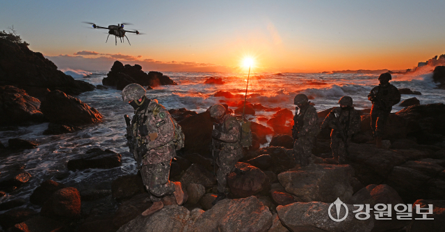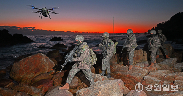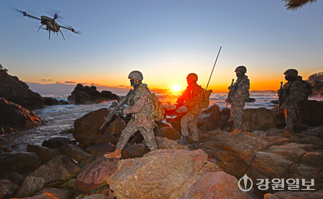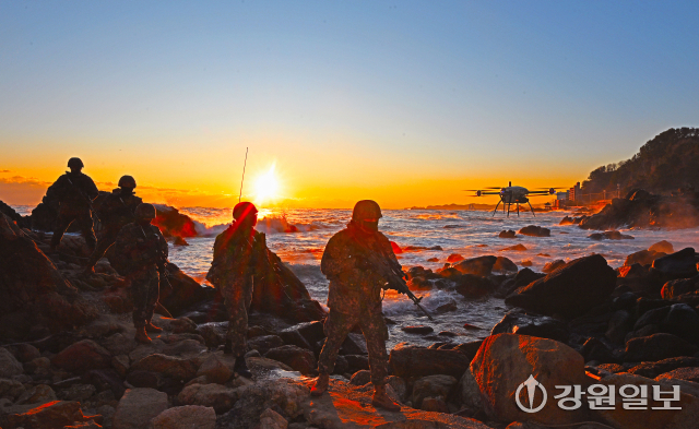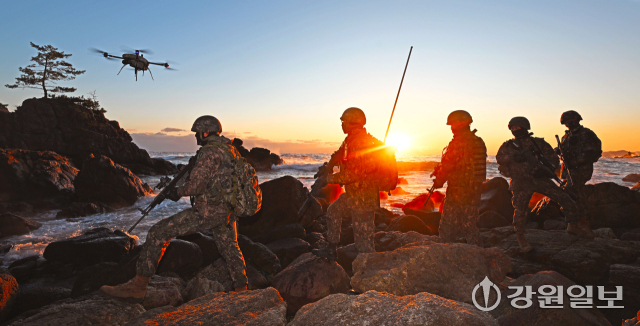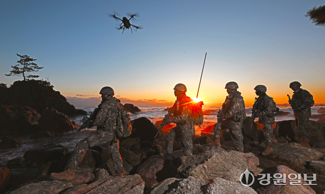 30일 육군 제23경비여단 장병들이 삼척시 일대 해안가를 따라 경계용 드론과 함께 수제선 정밀 정찰을 실시하며 한 해를 마무리하고 있다. 지난 한해 다사다난했던 국내·외 안보 정세 속에서도 대한민국 안보를 책임진 장병들은 경계용 드론을 이용해 높은 파도와 바위 등으로 접근이 어려운 구역까지 살피며 24시간 빈틈없는 경계작전태세를 유지해오고 있다.