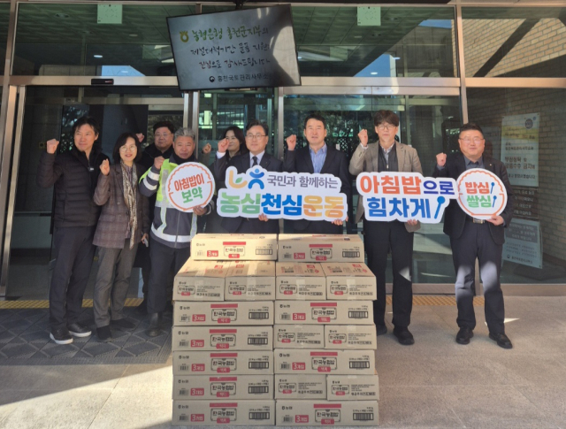 NH농협 홍천군지부(지부장:김준태)와 홍천국토관리사무소(소장:원종덕)는 지난해 12월 31일 홍천국토관리사무소에서 쌀 소비 촉진 캠페인을 개최했다. 농협은 겨울철 제설 작업을 추진하는 관계자들을 격려하며 쌀을 전달했다.